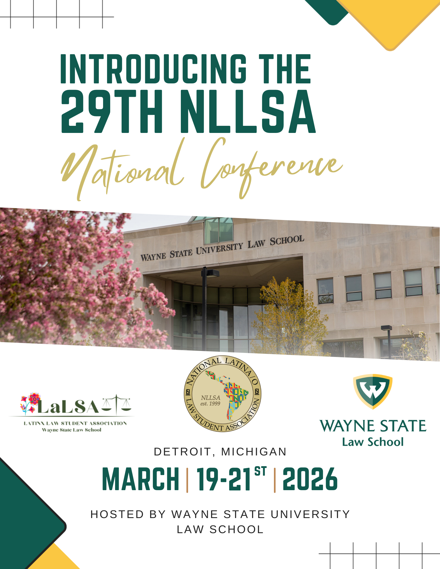 The National Latina/o Law Students Association is proud to announce the 29th Annual Conference hosted by Wayne State University Law School in the heart of Detroit, Michigan! The conference will run from Thursday, March 19, 2026, to Saturday, March 21, 2026, and will include: